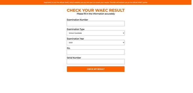 A simple website built with vanilla HTML, CSS and JavaScript for students to check thier WAEC results